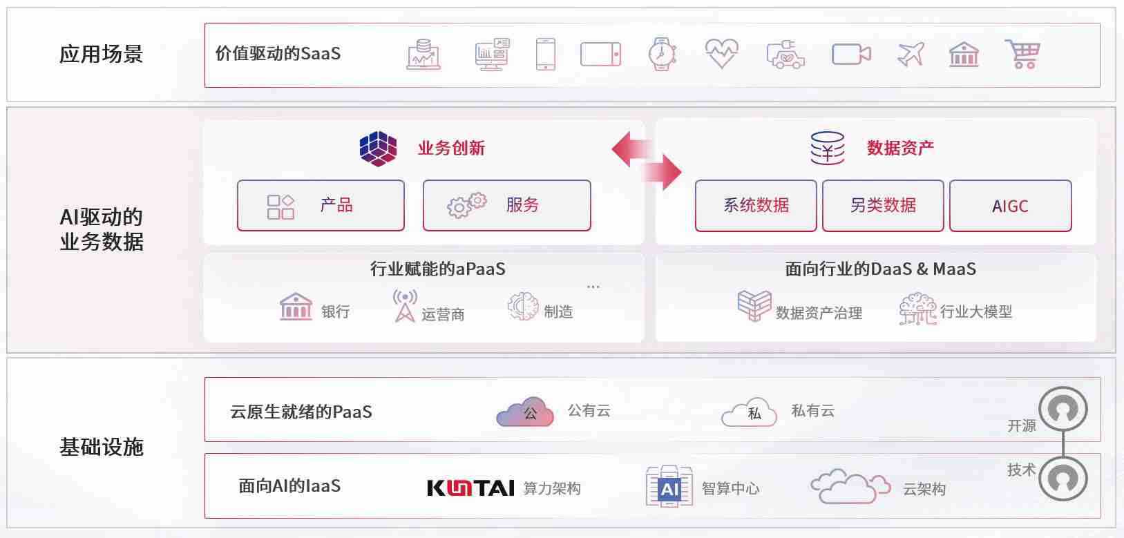 数字时代,,围绕企业数字化转型的关键要素,,,,今年会数码开创性的提出数云融合战略和技术体系框架,,,,着力在云原生、、数字原生、、、、AI原生和信创产业上架构产品和服务能力,,,,为处在不同数字化转型阶段的快消零售、、汽车、、、金融、、、、医疗、、、政企、、、、教育、、、运营商等行业客户提供泛在的敏捷IT能力和融合的数据驱动能力,,,构建跨界融合创新的数字业务场景和新业务模式,,,助力企业级客户建立面向未来的核心能力和竞争优势,,,全面推动社会的数字化、、、智能化转型升级。。。。